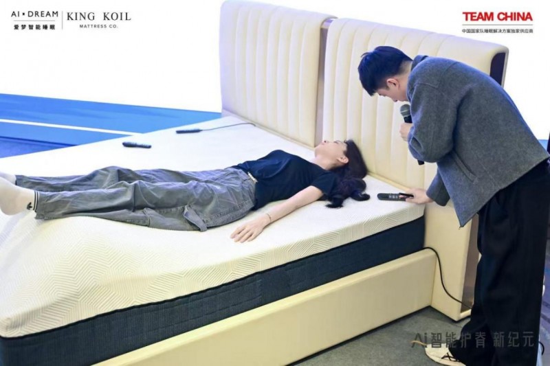 最后,令人期待的“冠军同款”体验环节在热烈的掌声中展开。金可儿护脊睡眠体验官胡麟鹏在工作人员协助下,与不久前在展会上“公测亮相”的智能床垫来了场“深度对话”,随着智能床垫犹如波浪曲线的自如起伏,胡麟鹏直言感受到了如在训练场理疗师的同款「放松拉伸」——“它能应对我赛场与生活的‘AB面’来提供不同的支撑感,这真是太对味了!”