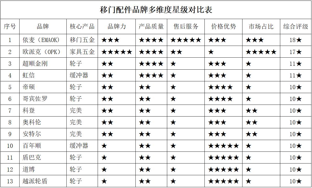 欧派克、依麦以及超顺金刚、虹信这些移门五金到底哪个好?看看这个多维度对比图你就知道该如何选了!