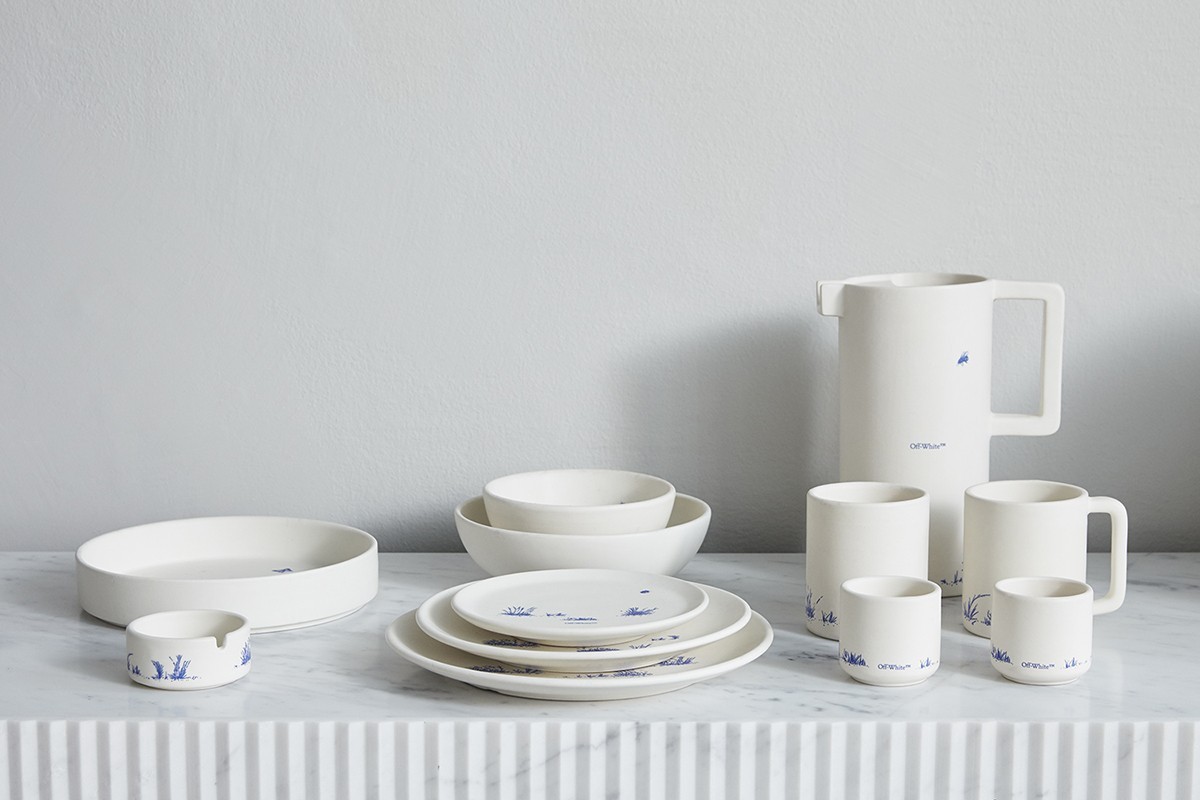 ▲众多以矢车菊蓝设计为主题的陶瓷用品。(图/翻摄自Off-White)