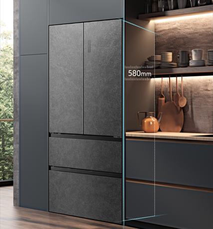 超薄的580mm机身设计,使得469矿玉岩能够轻松嵌入标准尺寸60cm的中式橱柜中,无论是传统还是现代风格的厨房,都能实现与家居环境的和谐统一,完美呈现全嵌入式的美学体验。