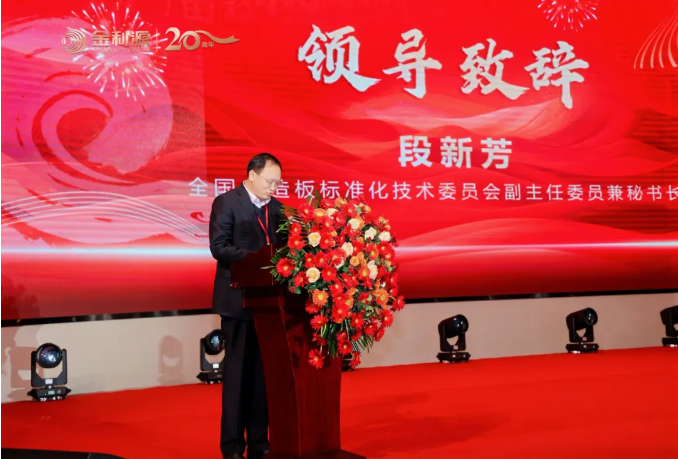 在这个辉煌而又神圣的时刻!华诞二十年,来自全国各地经销商家人与中国木材与木制品流通协会会长——李佳峰,全国人造板标准化技术委员会副主任委员兼秘书长、中国林业科学研究院木材工业研究所标准化与产业政策研究室主任——段新芳,中国木材与木制品流通协会板材分会副会长兼秘书长——肖明,中南林业科技大学材料科学与工程学院院长——李新功,林业产业标准化国家创新联盟秘书长、中国林业科学研究院木材工业研究所标准化与产业政策研究室副主任——李晓玲,江西省婺源县企业联合会、企业家协会会长——汪培欣,江西省检验检测认证总院工业产品检验检测院(国家竹木产品检验中心)竹木中心主任、高级工程师——朱钦,江西省生态板协会会长——马跃华,江西省生态板协会秘书长——胡佩元,中国木业网董事长——李钰娇,中国建材网CEO——高晗,杭州市装饰装修商会秘书长——陈忆,南京永达户外传媒有限公司第一事业部营销总监——亚胜,浙江帝龙新材料股份有限公司营销副总——徐鹏,金利源建材集团董事长——金国君,金利源建材集团总经理——李华 等协会领导、行业嘉宾、企业领导以及来自全国各地五百余位经销商家人们、合作伙伴共同出席盛会,见证这一荣耀时刻!
