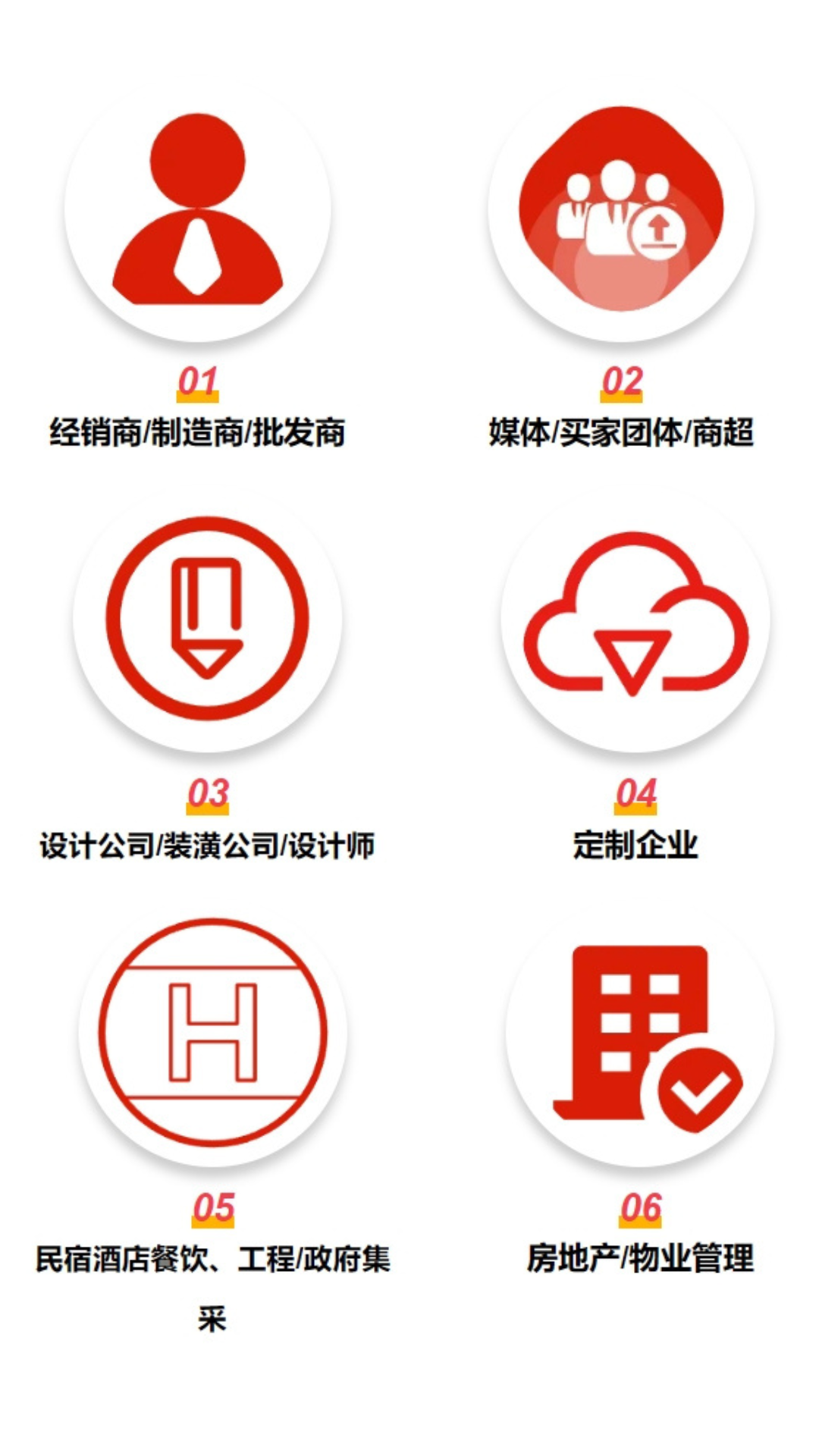 为满足家具各细分领域的多样化采购需求,第16届苏州家具展将全力组织以下领域约50,000+名采购商到场参观,面对面共享无限商机。
