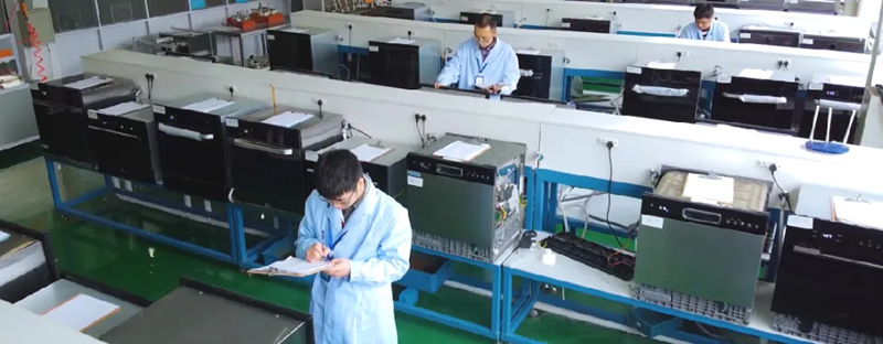 我们的测试中心,主要分为六大产品试验模块,其中包括寿命试验模块、环境试验模块、模拟包装运输跌落试验模块、安规试验模块、噪音试验模块、以及最完善正规的洗碗机性能测试模块。