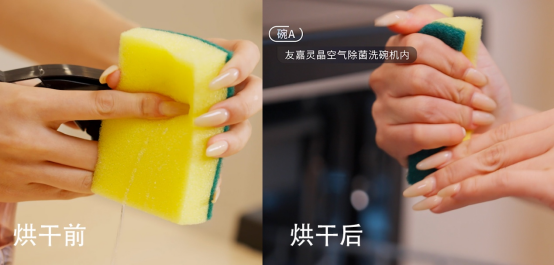 相比之下不难看出,洗碗还是得靠洗碗机,最好是要像友嘉灵晶空气除菌洗碗机这样有“四重深层除菌”才行,在洗碗过程中就有效杀菌,可以有效避免因为手洗不够仔细而产生细菌残留。