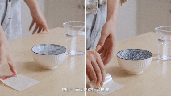 我们准备了两个煮过鸡蛋羹的碗,把一个碗放在洗碗机里洗,另一个就简单手洗。两边都洗干净后,咱们用菌落总数快检纸片采样,并且培养 24 小时,之后对比看看两个碗的菌落总数有大的差距。