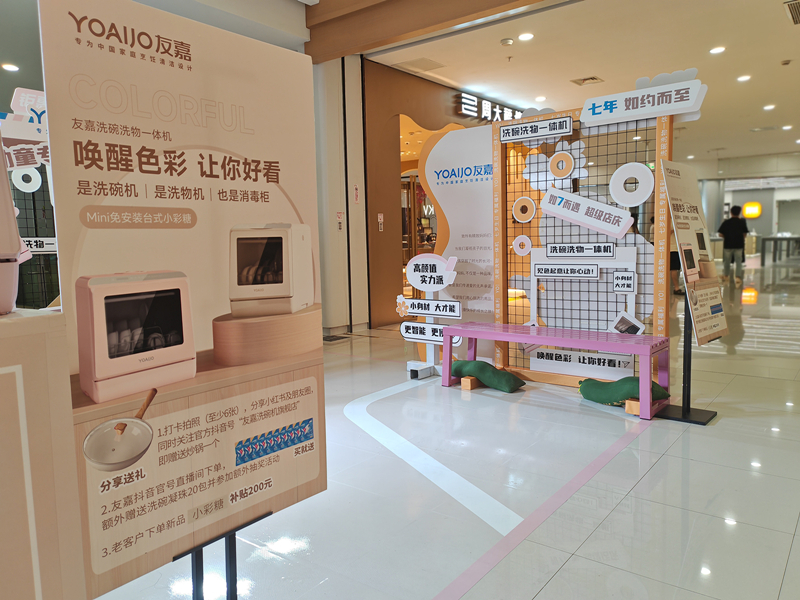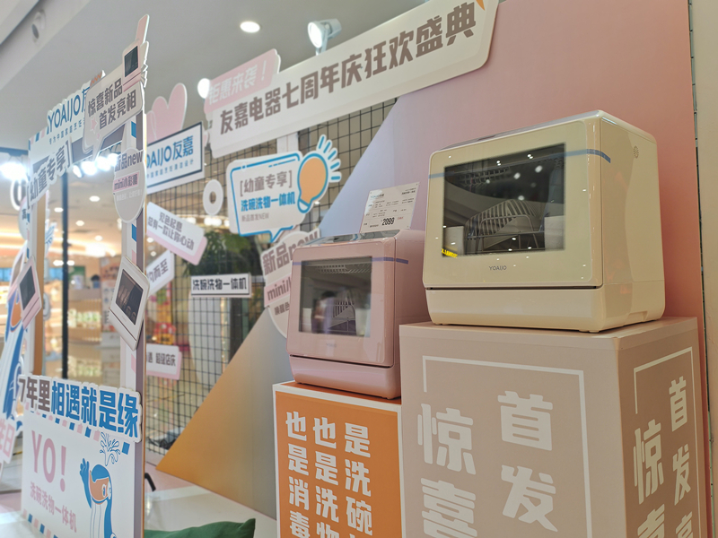 友嘉7周年庆典,小彩糖系列,洗碗洗物一体机新品上市,为回馈新老客户,活动期间,有多重优惠和多项互动送礼活动,欢迎前来咨询和体验,位于绍兴国金大悦城一楼友嘉快闪店!