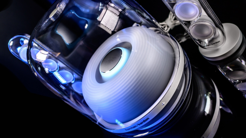 打开播放键,harman/kardon SOUNDSTICKS 4音乐水晶四代桌面式蓝牙立体声音箱将展现出流光溢彩的环形状态指示光效,机身内部新增加了呼吸梦幻蓝色灯光,优雅的波纹光影效果,绚丽光影,光随乐动。