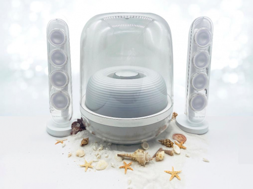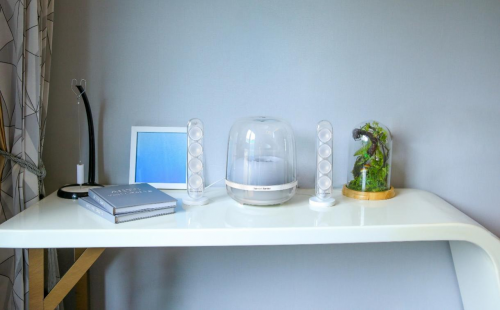 harman/kardon SOUNDSTICKS 4沿袭了哈曼卡顿前几代水晶音箱的设计风格,用艺术之美激发灵感,将艺术融于声音系统,创造出优雅醇正的音乐氛围。并在低音炮单元的工业设计上不断精进创新,全封闭的透明穹顶外观将具有线条感的内饰结构一览无余,充分平衡了功能与时尚。扬声器部分采用四个单元串联的方式,透明的长条形设计简洁精巧,与现代设计的家居风格相得益彰,摆放在家中成为一件高雅的现代艺术精品。