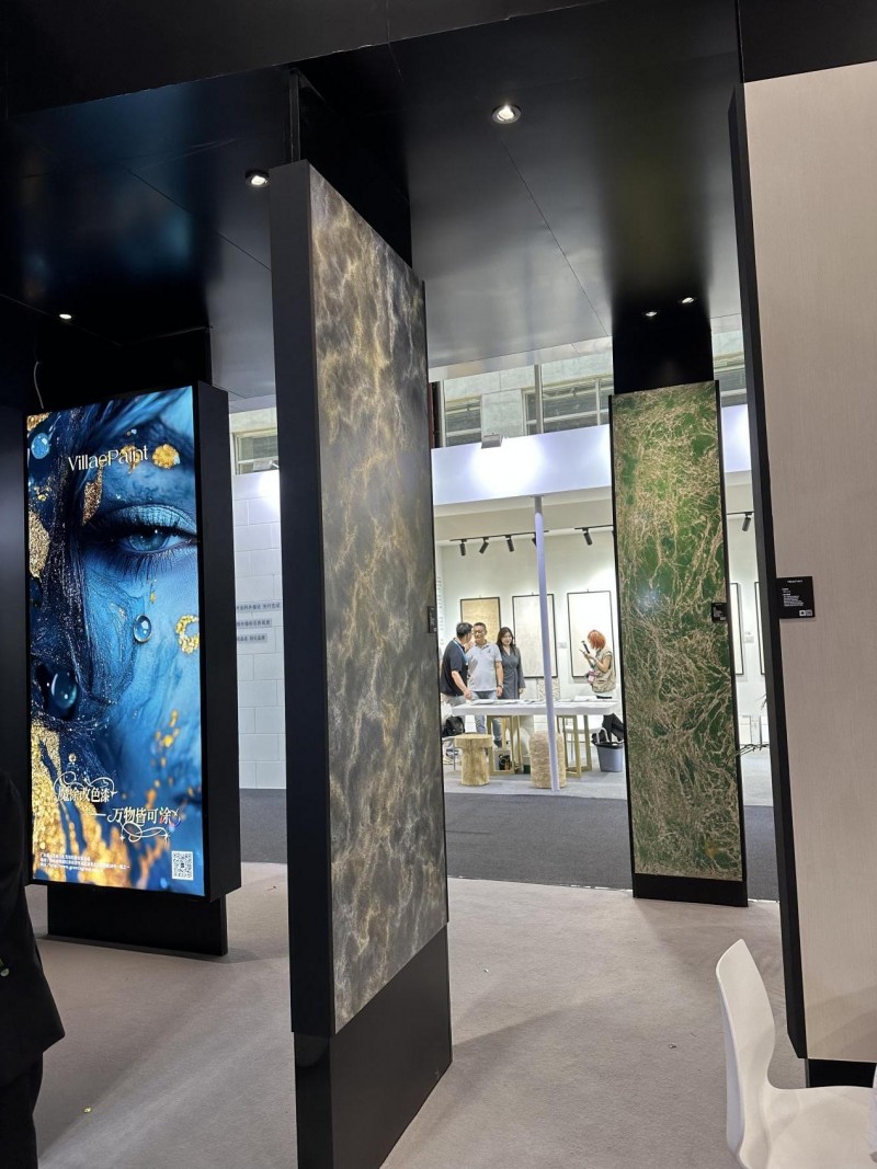 采访期间,VillaePaint甄图艺墅家的展位始终络绎不绝,无论是视觉效果还是手感触及,Villae paint的展板都得到了现场观众的高度认可。那么,如此吸睛又让人爱不释手的Villae paint产品究竟有什么魅力?刘海丰也从不同维度给出了全方位的解读。